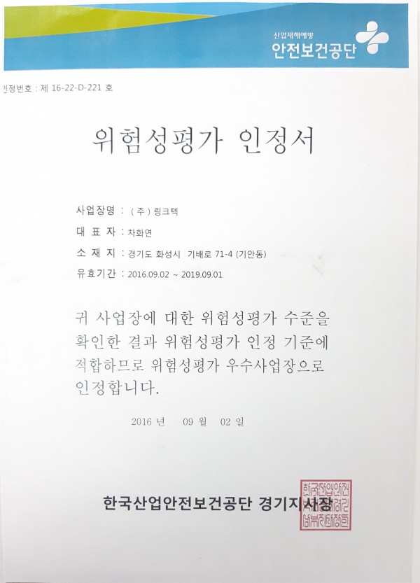 기타 위험성평가인정서