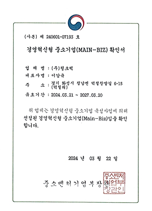 기타 경영혁신형 중소기업(MAIN-BIZ) 확인서